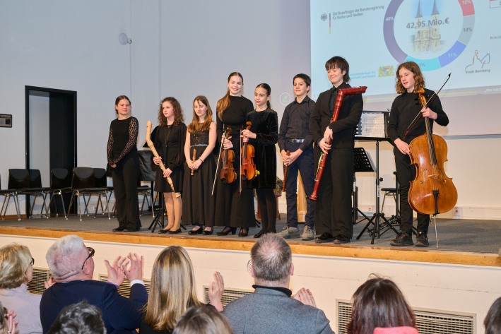 Dank sagte die vhs-Leiterin auch der damaligen langjährigen Kuratoriumsvorsitzenden Rosemary Neberle, die sich im Rathaus sowie über viele Jahrzehnte als Dozentin im Alten E -Werk über die Maße engagiert habe. Viel Applaus gab es für die Musik. Stipendiatin Nanako Tamai und Heiko Triebener von den Bamberger Symphonikern (beide Tuba) präsentierten unter anderem eine Weltpremiere: Das Stück „Zwei Königinnen der Nacht“ von Mozart, der 40 Jahre vor Erfindung der Tuba gestorben ist.