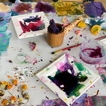 Am zweiten Tag stellen wir aus Pflanzenfarben gemeinsam unsere eigene Malkreide her.
